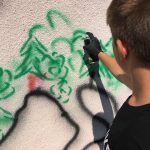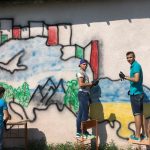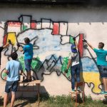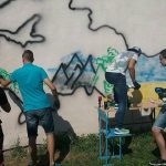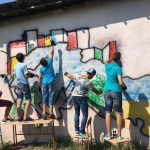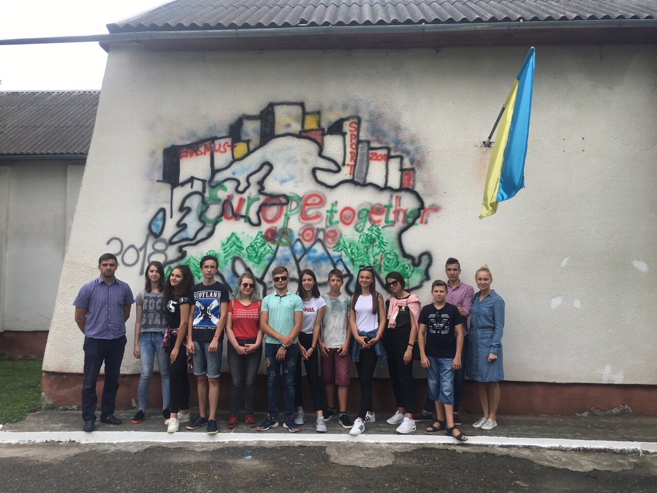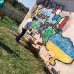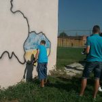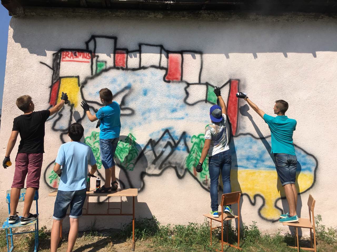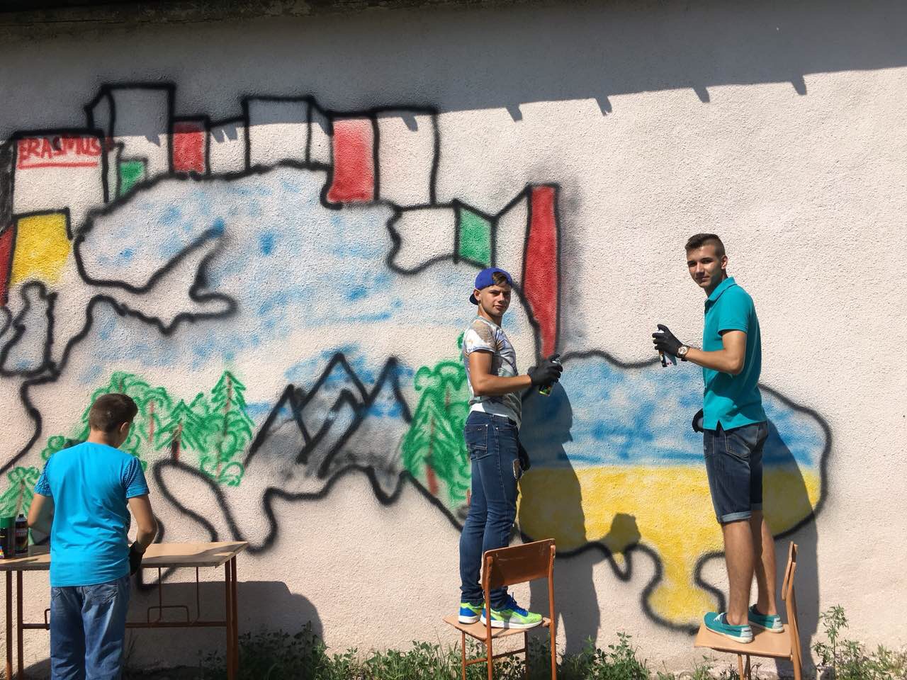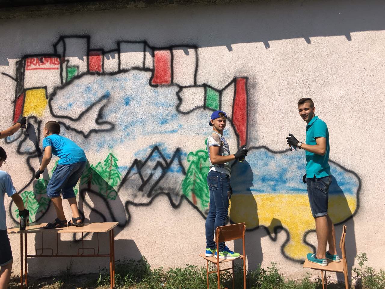 Тож, наші діти з великим ентузіазмом прагнули втілити часточку проекту. І завдяки співпраці з місцевою владою ОТГ та районною адміністрацією було обрано місце. Не одне, а два. Перше – на одній з будівель Ямницького ліцею. Друге – на будівлі Тисменицької ДЮСШ. Малювали всі і все (звичайно, відповідно до ескізу).