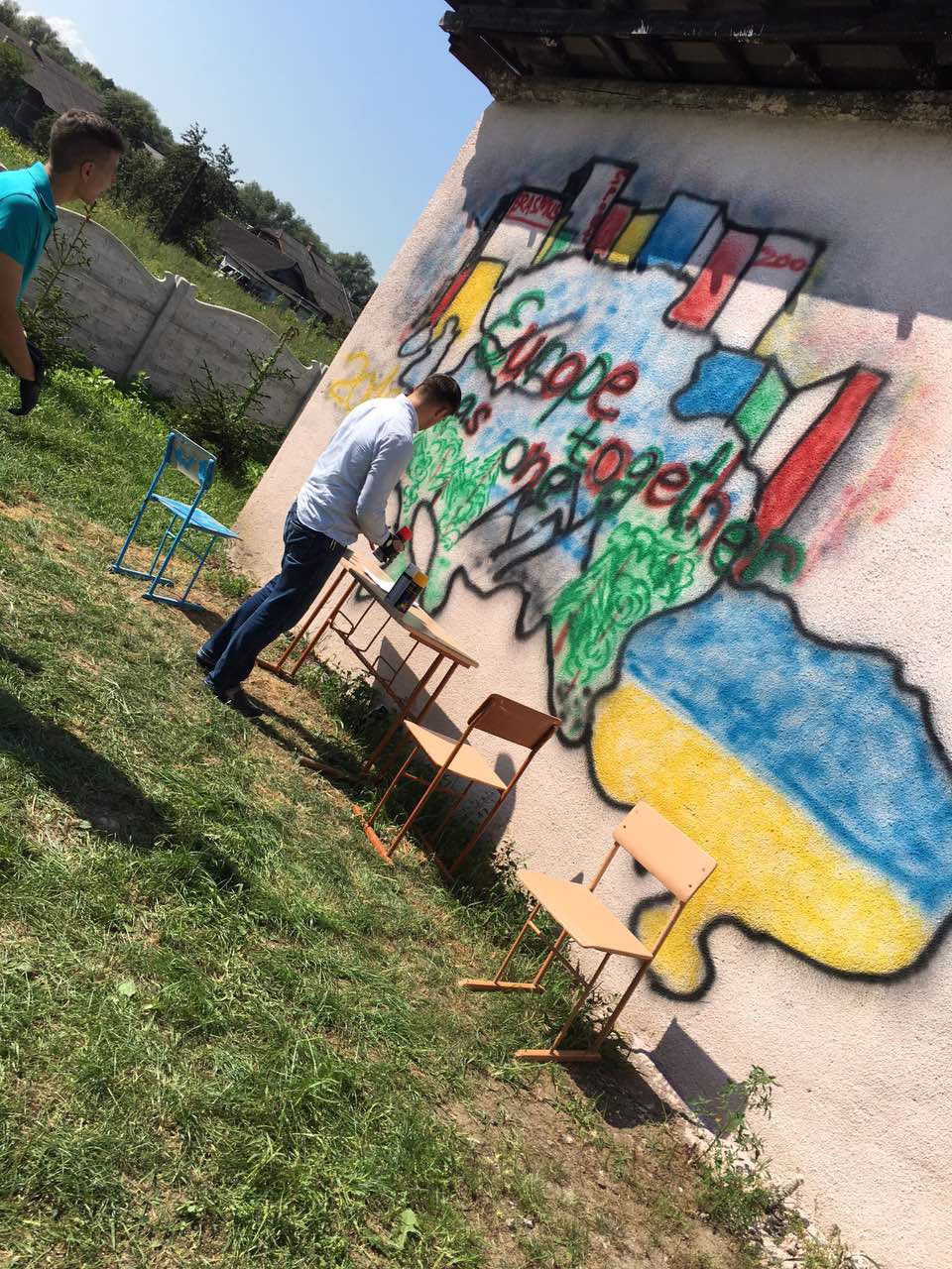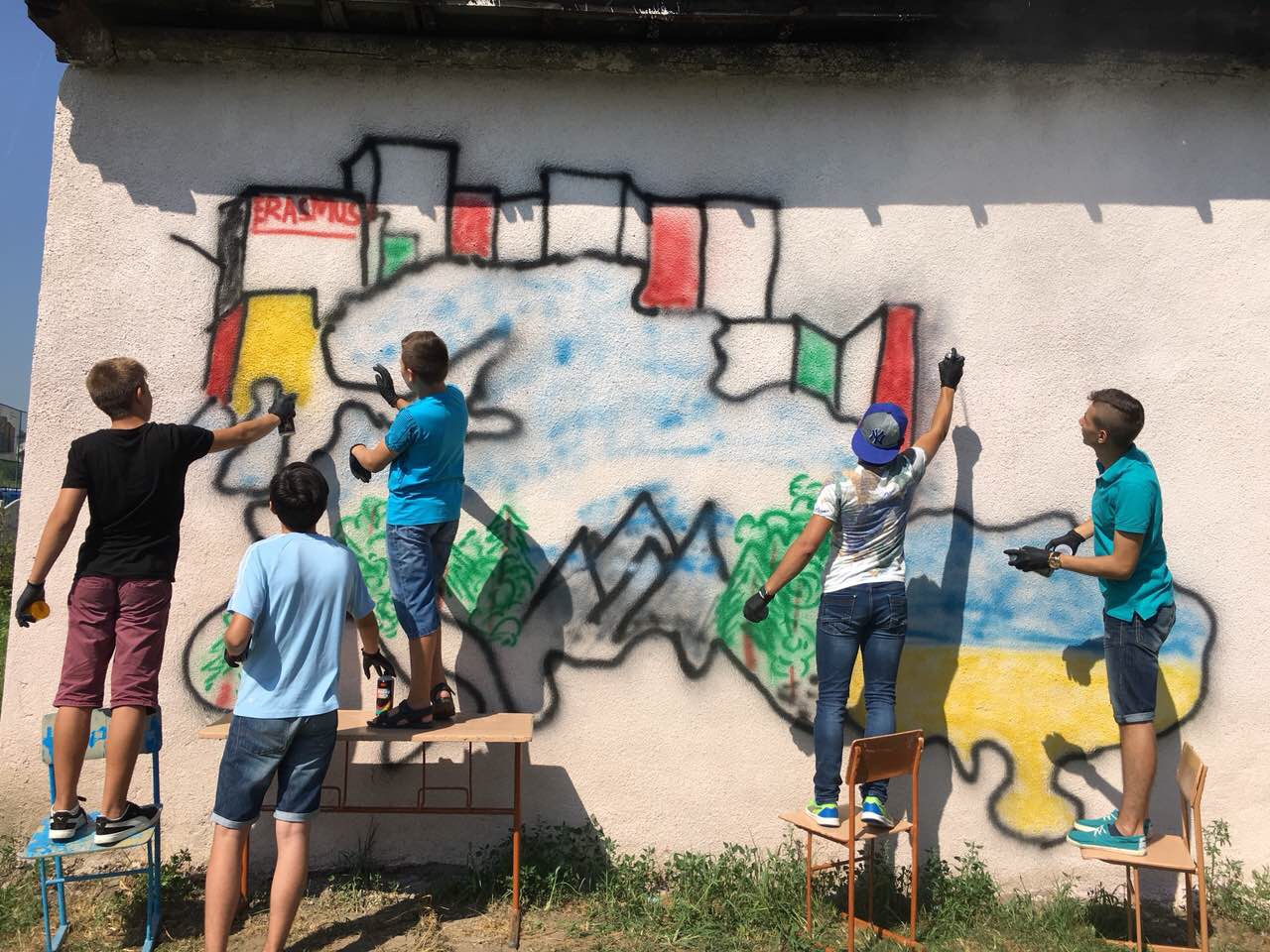 Діти були активними учасниками основної частини проекту: співали, танцювали, проводили дебати, формували своє ставлення до основних викликів Європи та екологічних проблем людства, малювали. Саме в таборі було підготовлено ескіз графіті-лого задуму, в якому поєдналась концепція проекту – Європа майбутнього, як одне ціле. Даний малюнок було домовлено зобразити на одній стіні в себе дома на батьківщині.