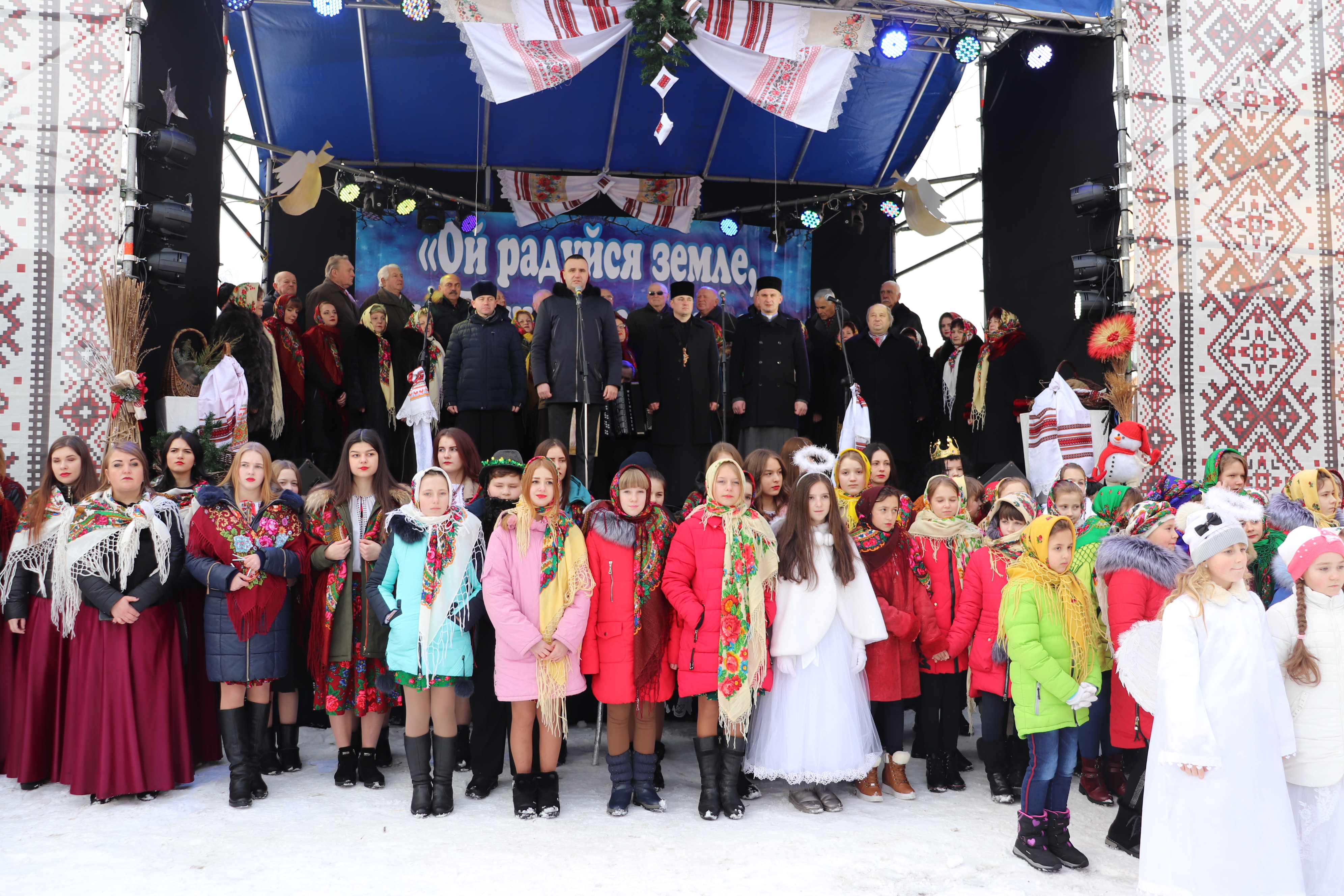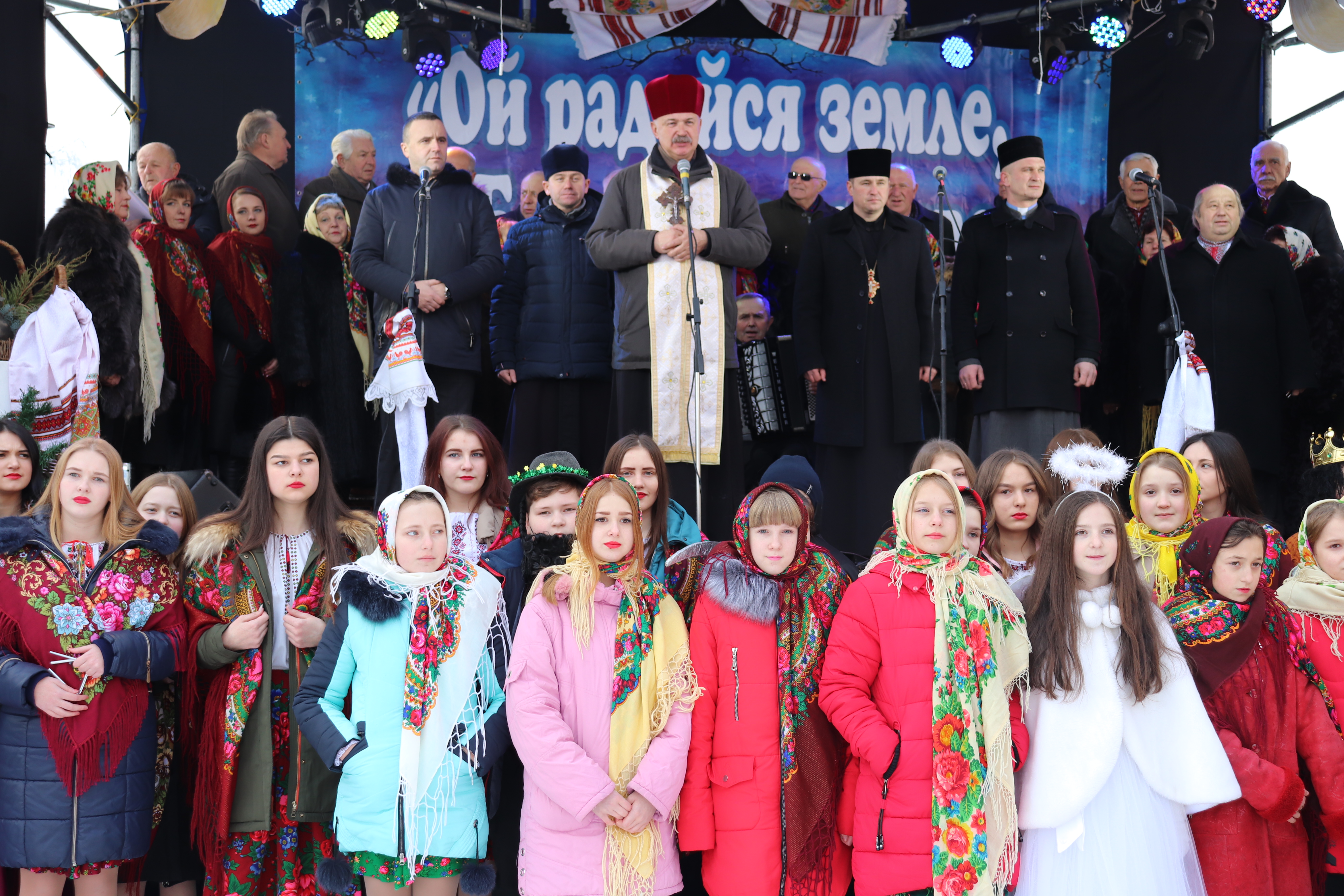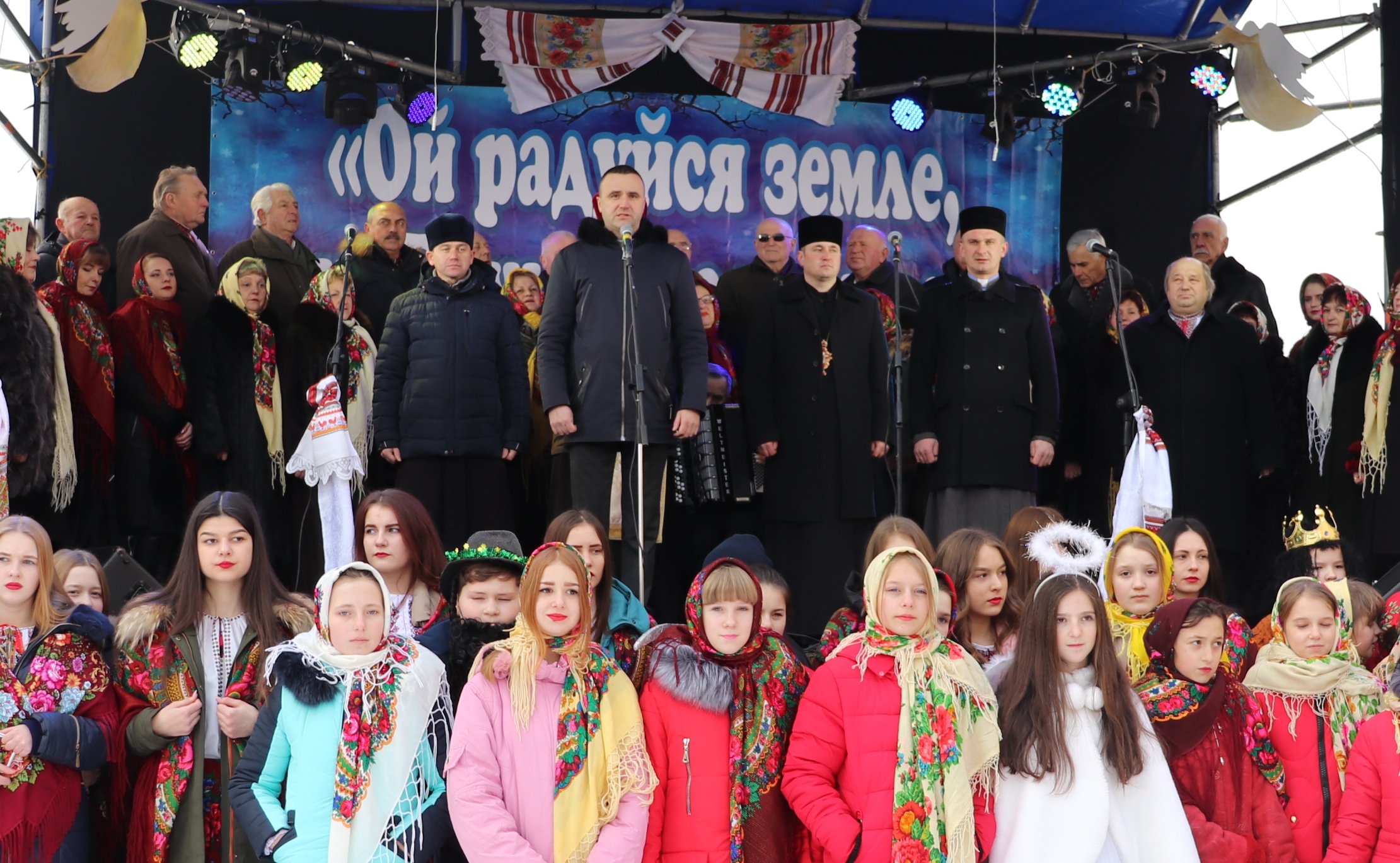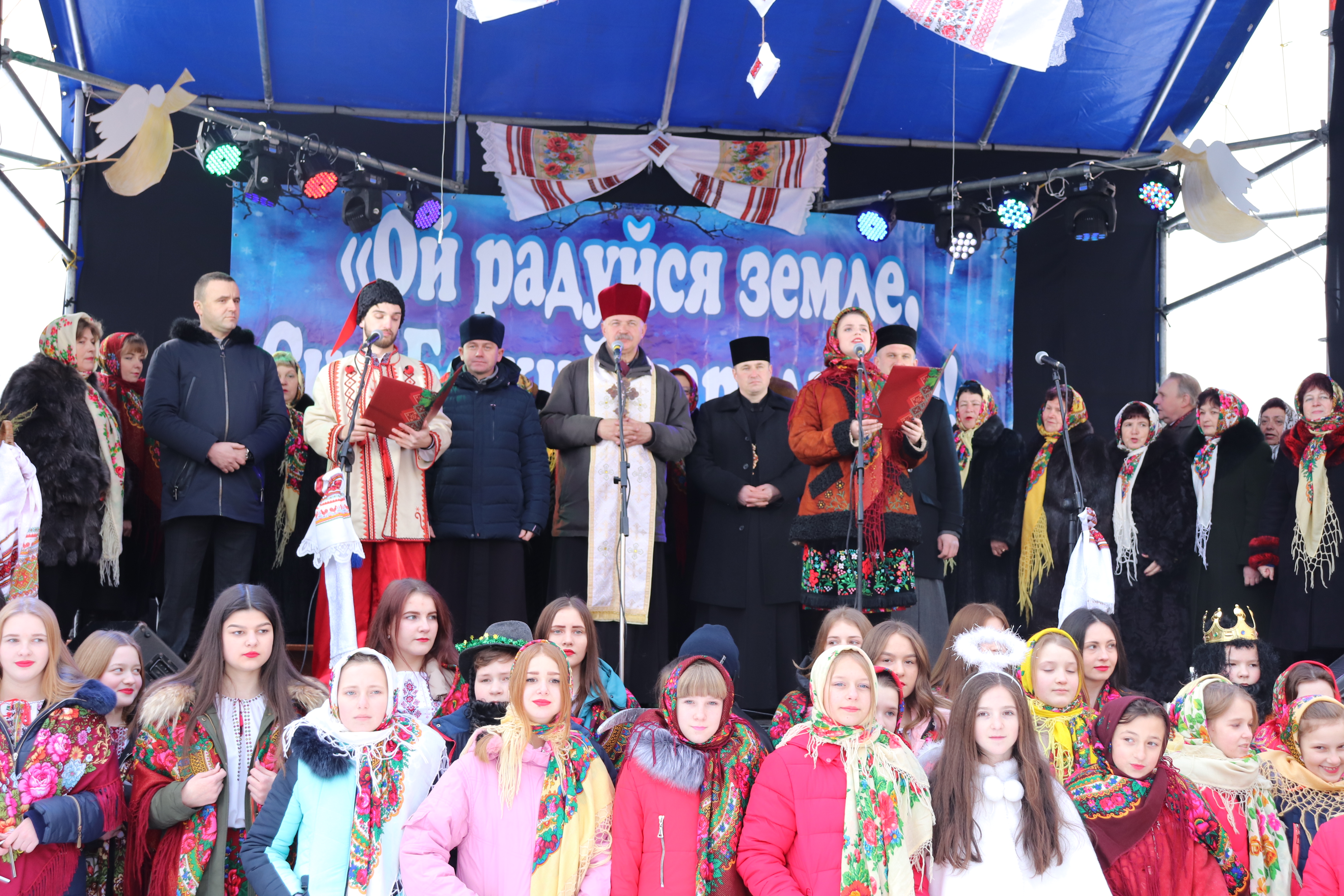 Спільним виконанням однієї з найпопулярніших колядок “Нова радість стала” та урочистою ходою колективів до сцени артисти відкривали святкову програму. Отець-мітрат Богдан Курилів благословив учасників дійства на вдале проведення мистецького заходу, побажавши Господнього благословення у щирих намірах.