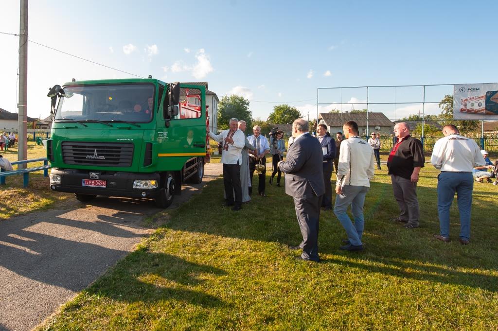 До мікрофону був запрошений також директор відділу постачання ПрАТ “Івано-Франківськцемент” Микола Деркач, який від імені голови правління підприємства Миколи Круця привітав жителів Ямниці зі святом і вручив очільнику громади ключі від нового сміттєвоза.