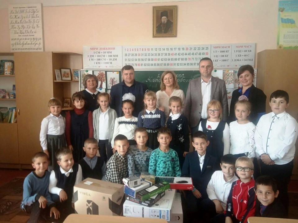 З нагоди свята сільський голова передав для ліцеїв та гімназій новеньку техніку – телевізори Smart TV, ноутбуки та принтери 3 в 1, котрі допомагатимуть вчителям зробити процес навчання більш цікавим та продуктивним, а учням – швидше засвоювати знання.