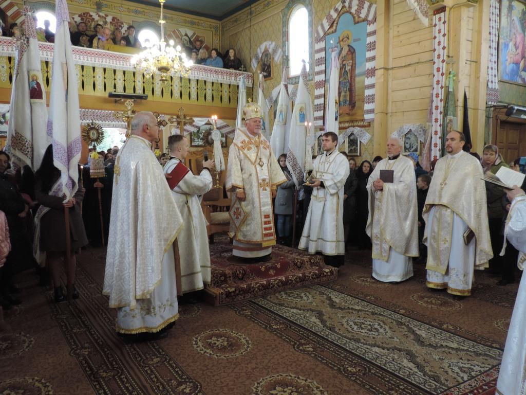 Святкування великої для тязівчан події розпочалися з Архієрейської Літургії. Запрошене духовенство, отець-настоятель церкви Дмитро Кубацький, молодь та віряни з хлібом і сіллю зустріли Митрополита кир Володимира Війтишина на подвір’ї храму, запросивши очолити Божественну Святу Літургію. Після Служби Архієрей у своїй духовній проповіді подякував усім, хто докладає зусиль задля збереження тязівської святині, і вручив жертводавцям почесні грамоти. На завершення церковного дійства парафіяни спільною молитвою “Боже великий, єдиний” просили у Бога миру та єдности для нашої Держави.