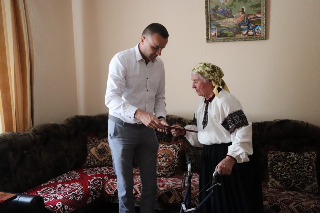 За багаторічну сумлінну працю та з нагоди ювілею сільський голова вручив жінці грамоту-вітання, побажавши міцного здоров’я на довгі роки, бадьорості, родинного затишку, добробуту, миру, Божої опіки і всіх земних благ.