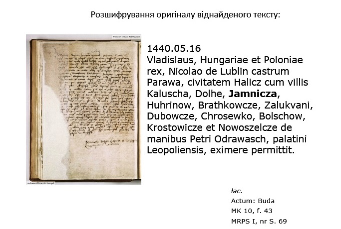 Після тривалого обговорення даного питання, а також з урахуванням думок і пропозицій пана Романа Ситника, комітет прийняв одноголосне рішення вважати офіційно прийнятою першою писемною згадкою про село Ямниця 1440-й рік, відмовившись від раніше прийнятого 1444-го року. Наступним кроком у даному напрямку є обговорення та затвердження нової офіційно прийнятої згадки про населений пункт на засіданні виконавчого комітету Ямницької сільської ради ОТГ.