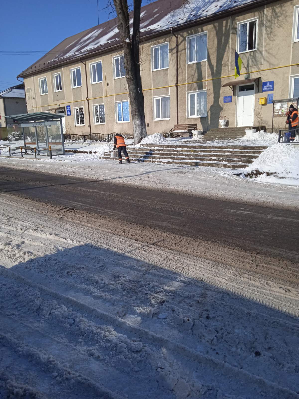 Від моменту погіршення погодної ситуації у населених пунктах Ямницької громади ведуться роботи з очищення доріг, вулиць, тротуарів, пішохідних переходів та зупинок від снігу, посипання дороги сумішшю солі та піску для запобігання ожеледиці. Задіяно снігоприбиральну техніку.