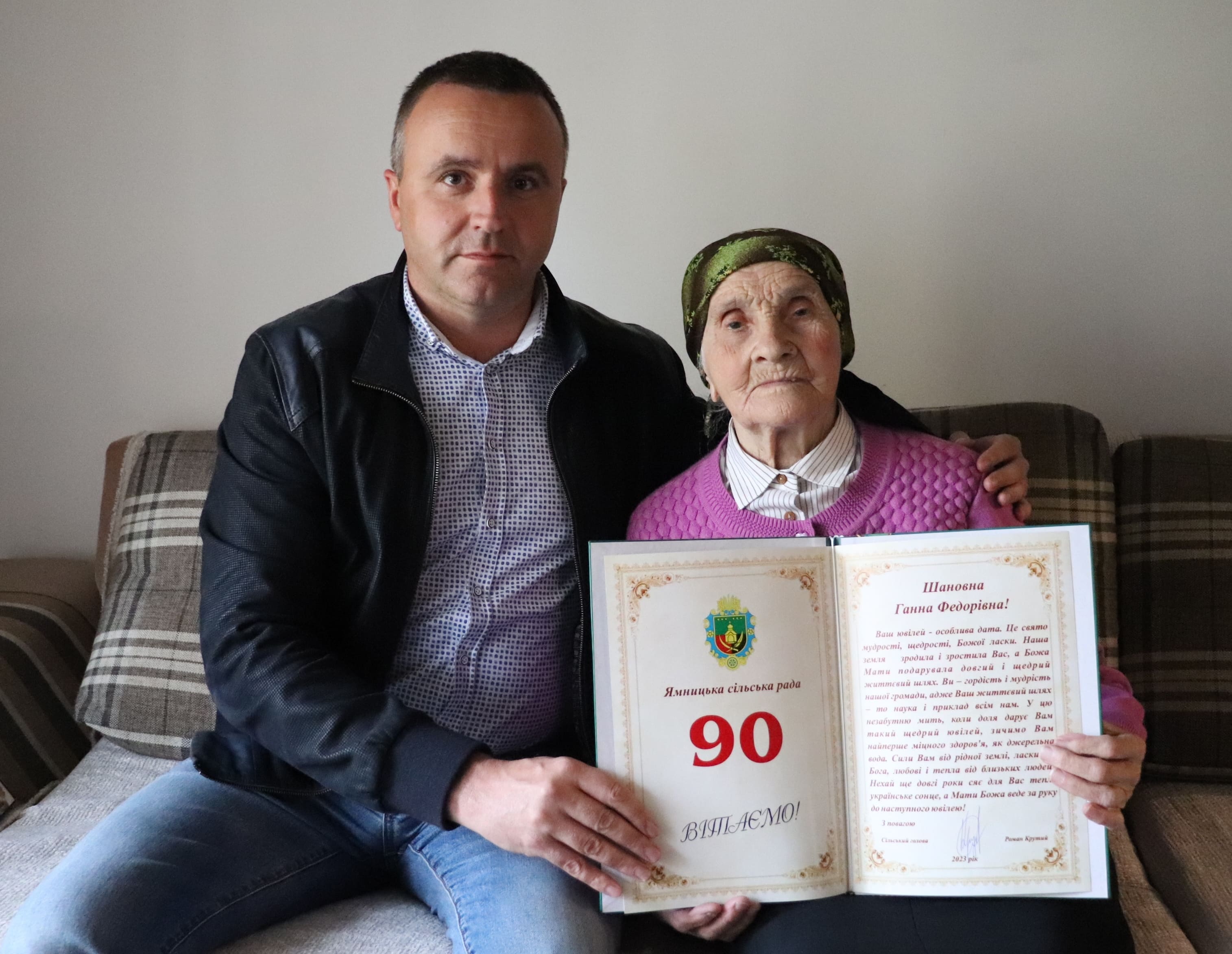 “Від усієї громади прийміть вітання з ювілеєм! Щира вдячність Вам за самовіддану й невтомну багаторічну працю та життєву мудрість. Бажаю довголіття, і нехай кожний день Вашого життя буде радісним та сонячним!” – звернувся до іменинниці сільський голова.