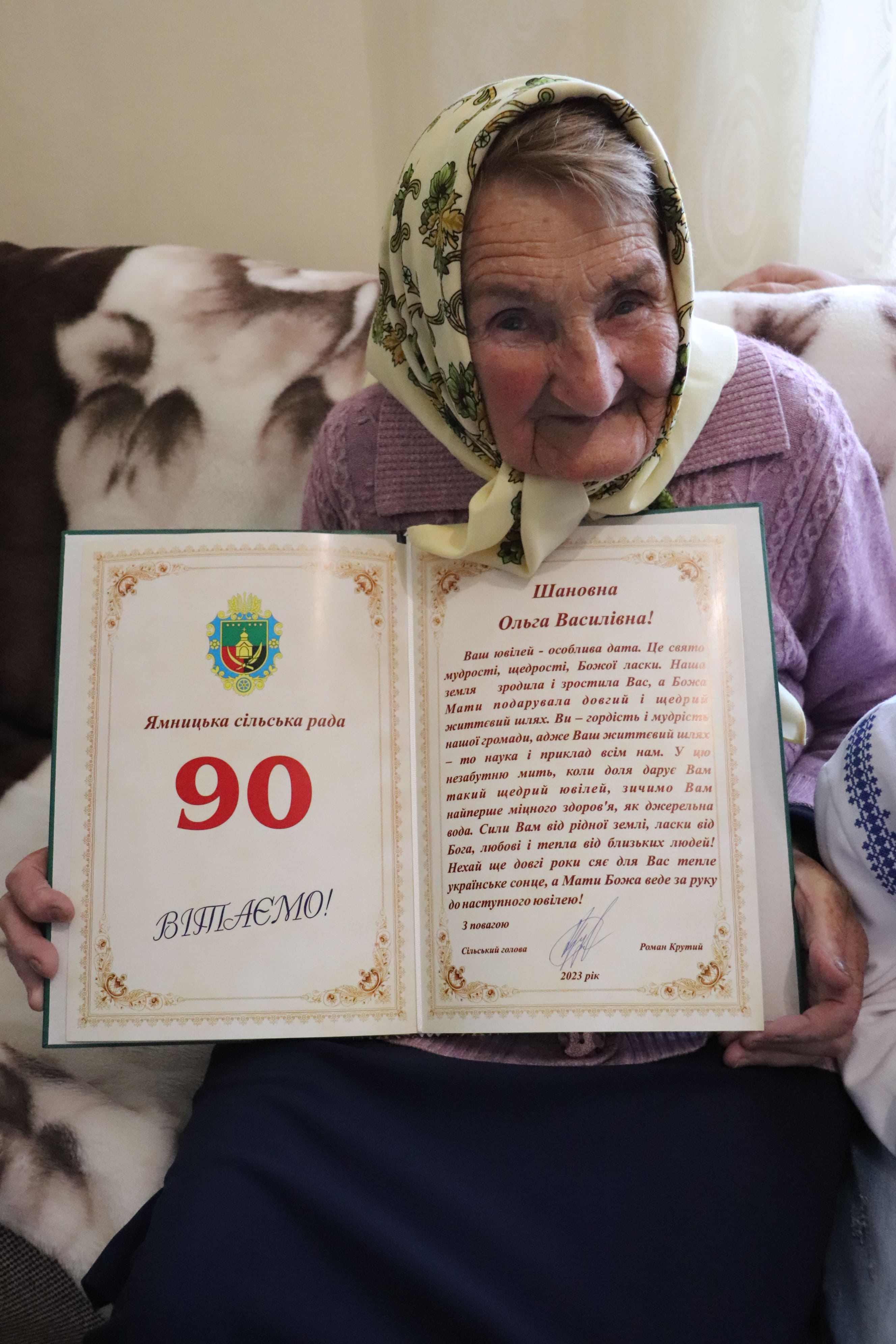 “Довгожителі є яскравим прикладом для наслідування молодому поколінню. Дай Вам Боже ще багато світлих днів і щасливих років. Ямницька громада гордиться, що має таких поважних ювілярів”, – звернувся до п. Ольги сільський голова.