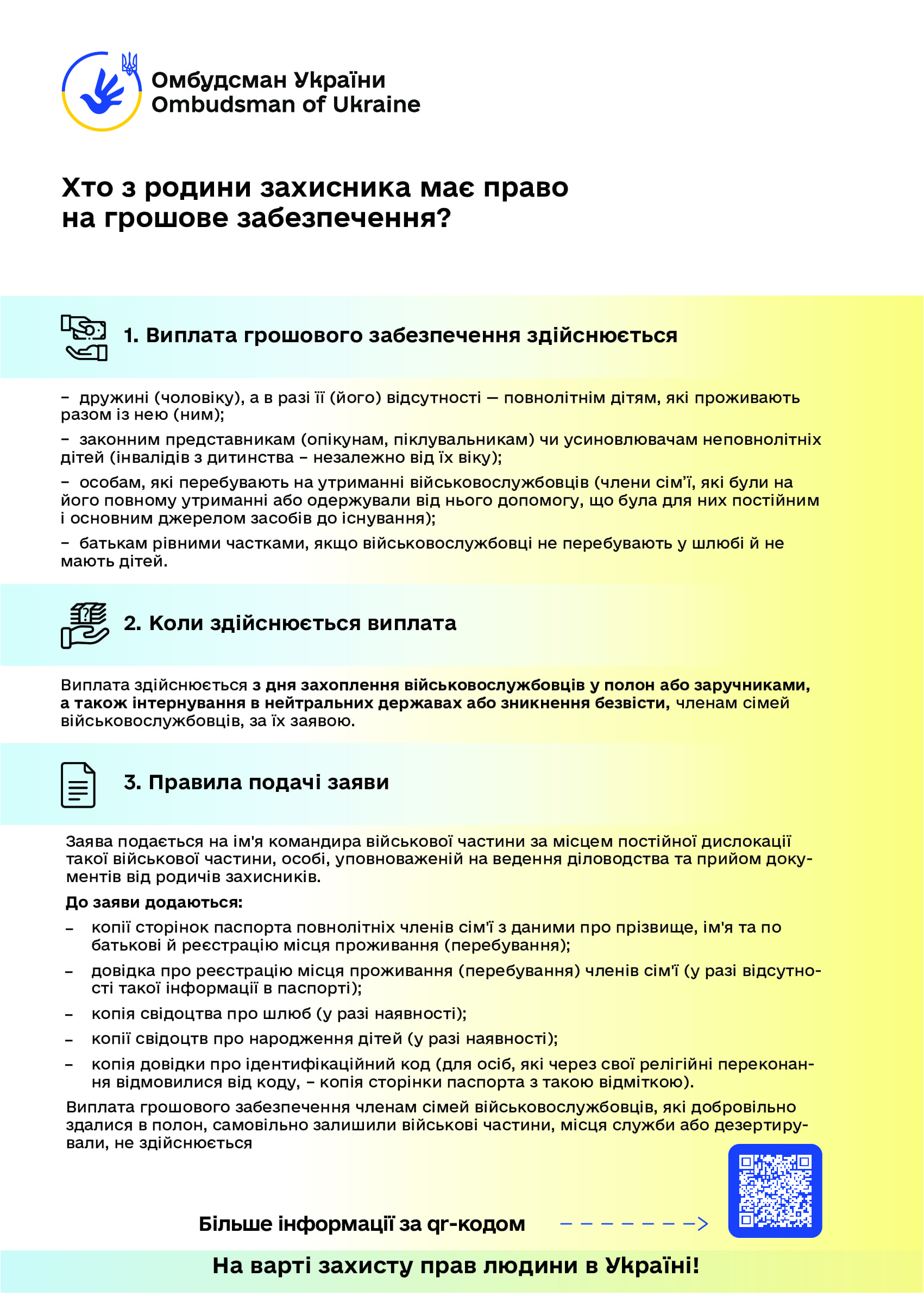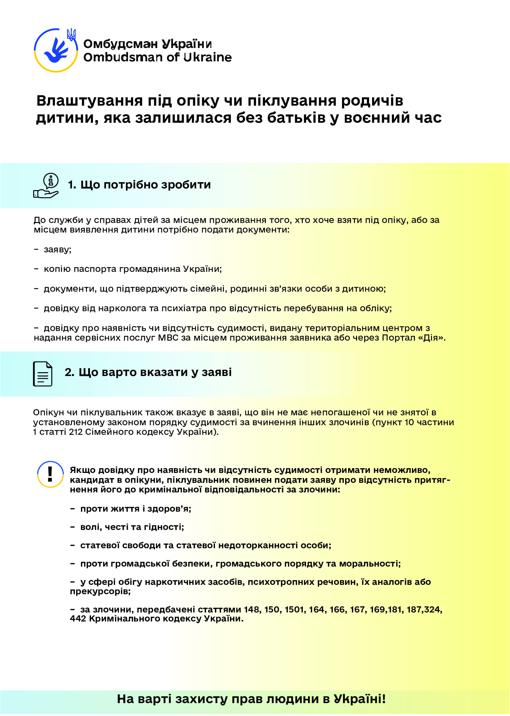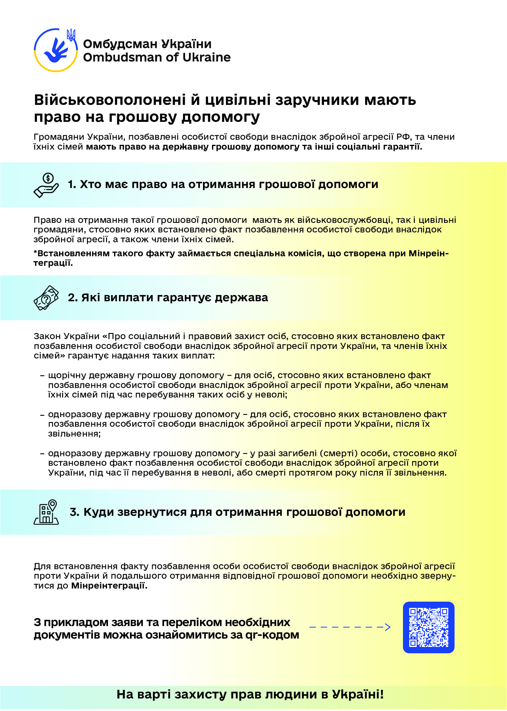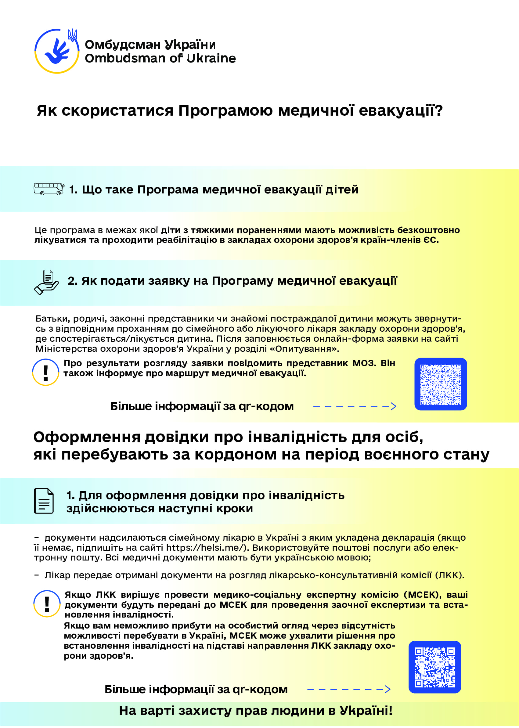 Керуючись статтею 22 Закону України “Про Уповноваженого Верховної Ради України з прав людини”, пропонуємо інформаційні матеріали (роз’яснення та графіки) Уповноваженого Верховної Ради України з прав людини з таких питань: