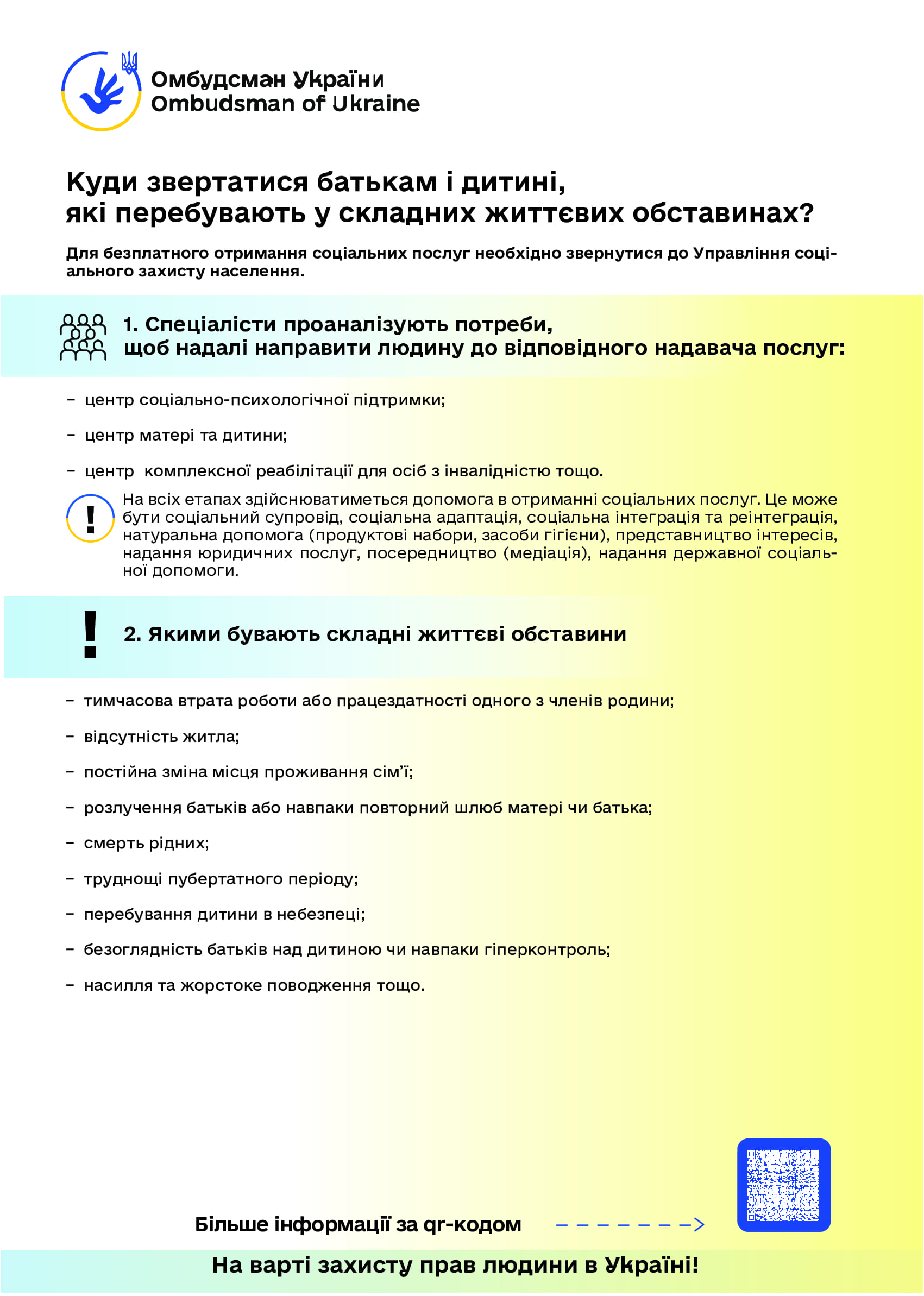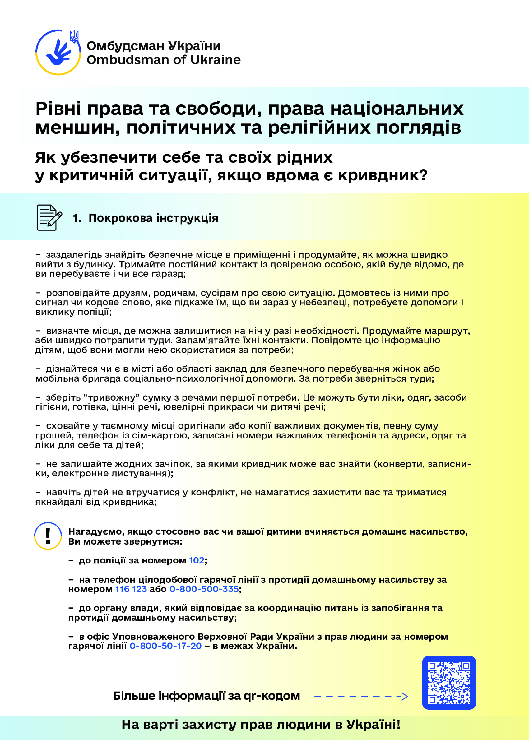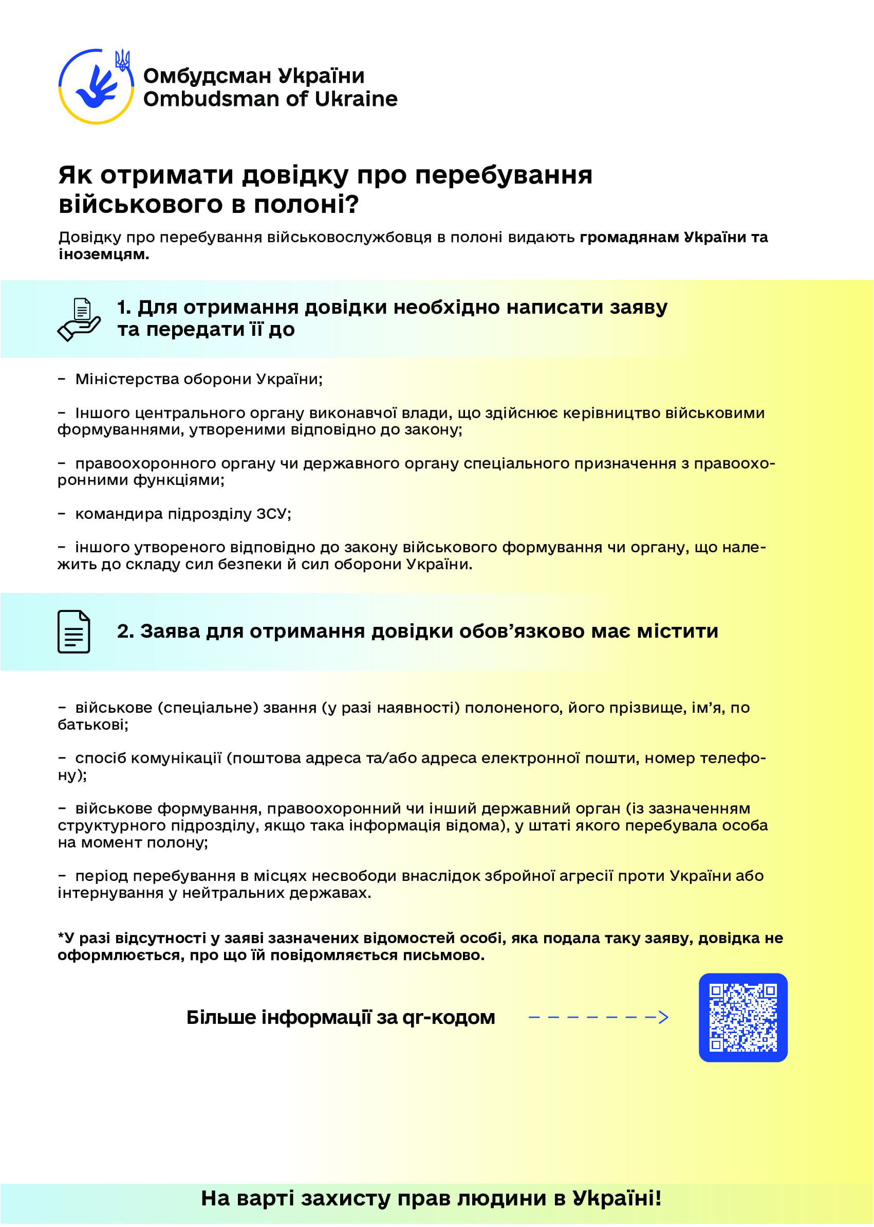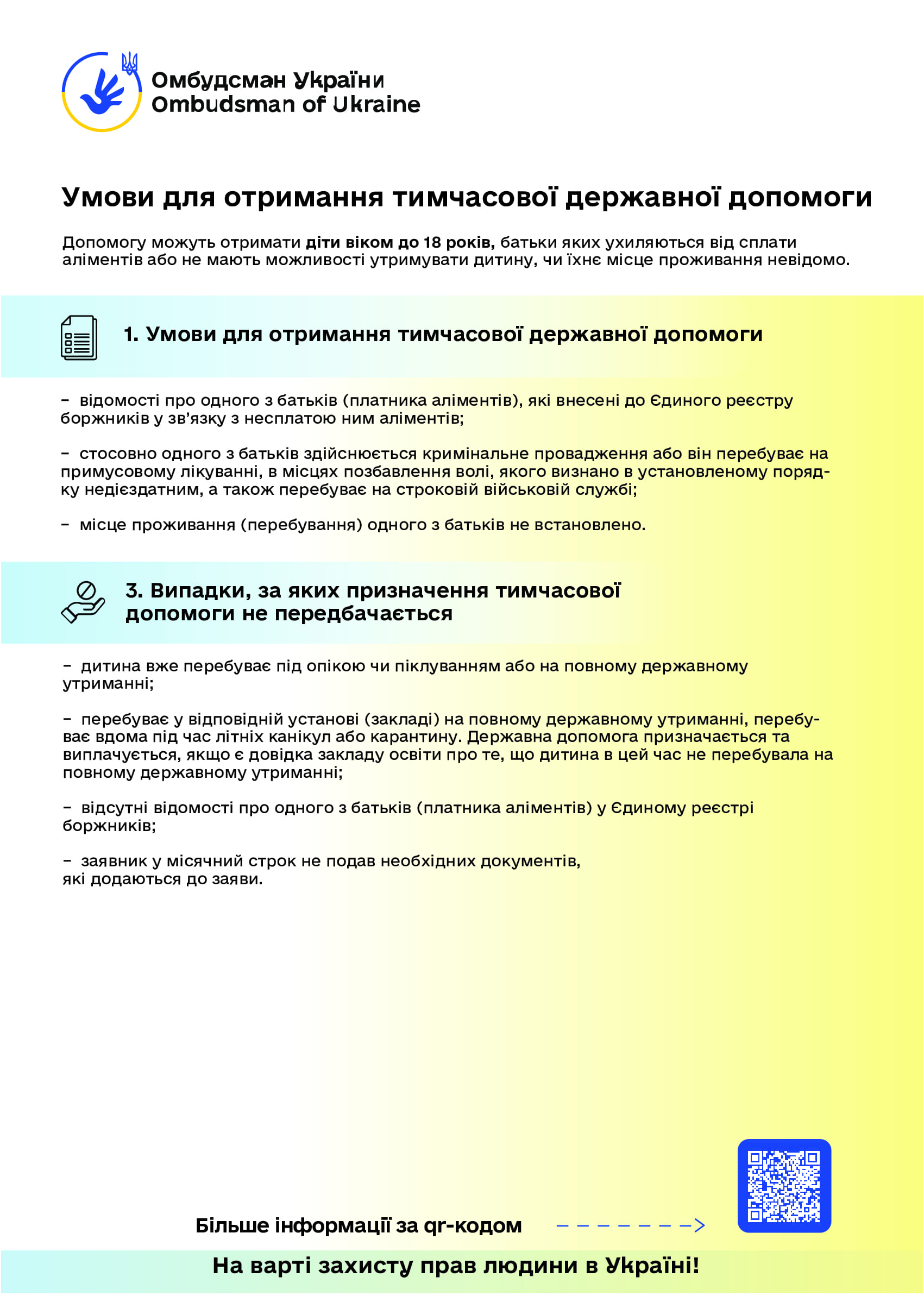 Керуючись статтею 22 Закону України “Про Уповноваженого Верховної Ради України з прав людини”, пропонуємо інформаційні матеріали (роз’яснення та графіки) Уповноваженого Верховної Ради України з прав людини з таких питань: