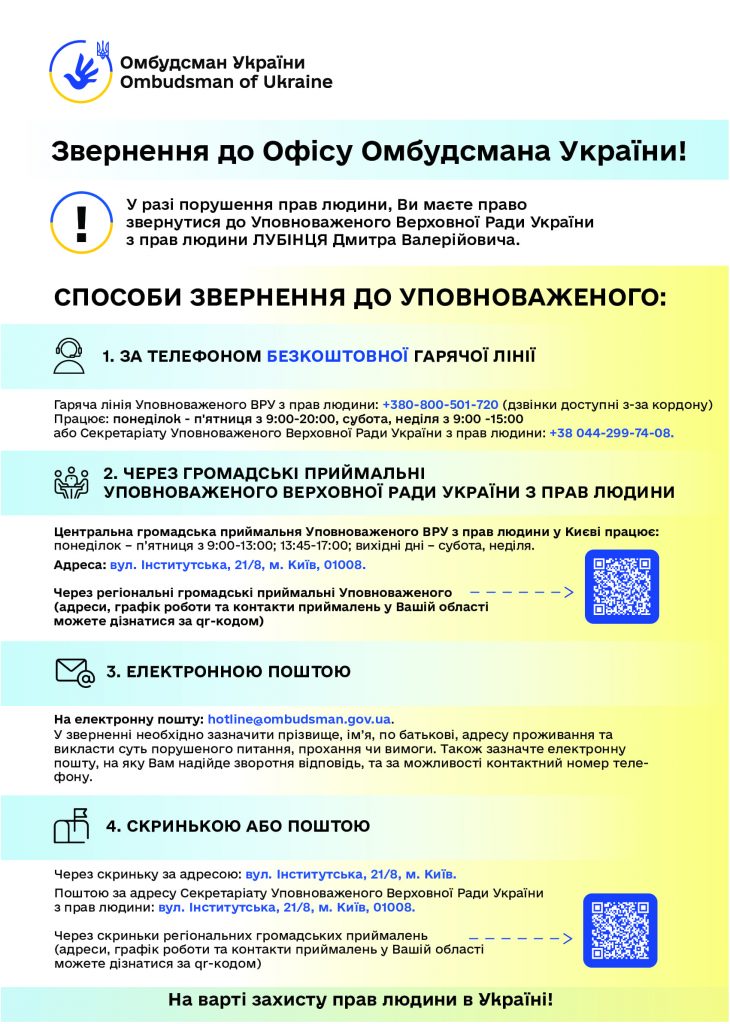 • звернення до Офісу Омбудсмана;