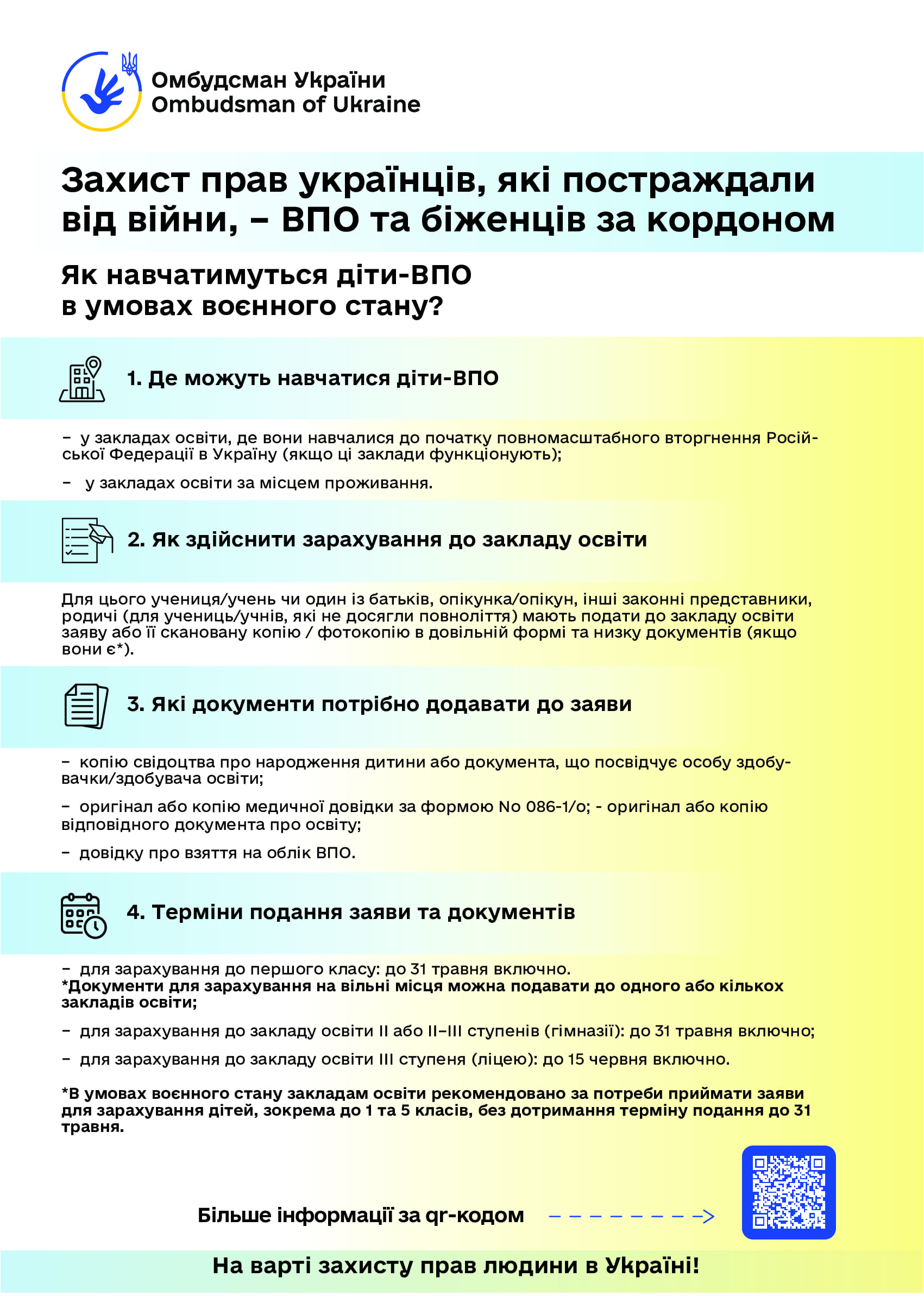 • права українців, які постраждали від війни, – ВПО та біженців за кордоном;