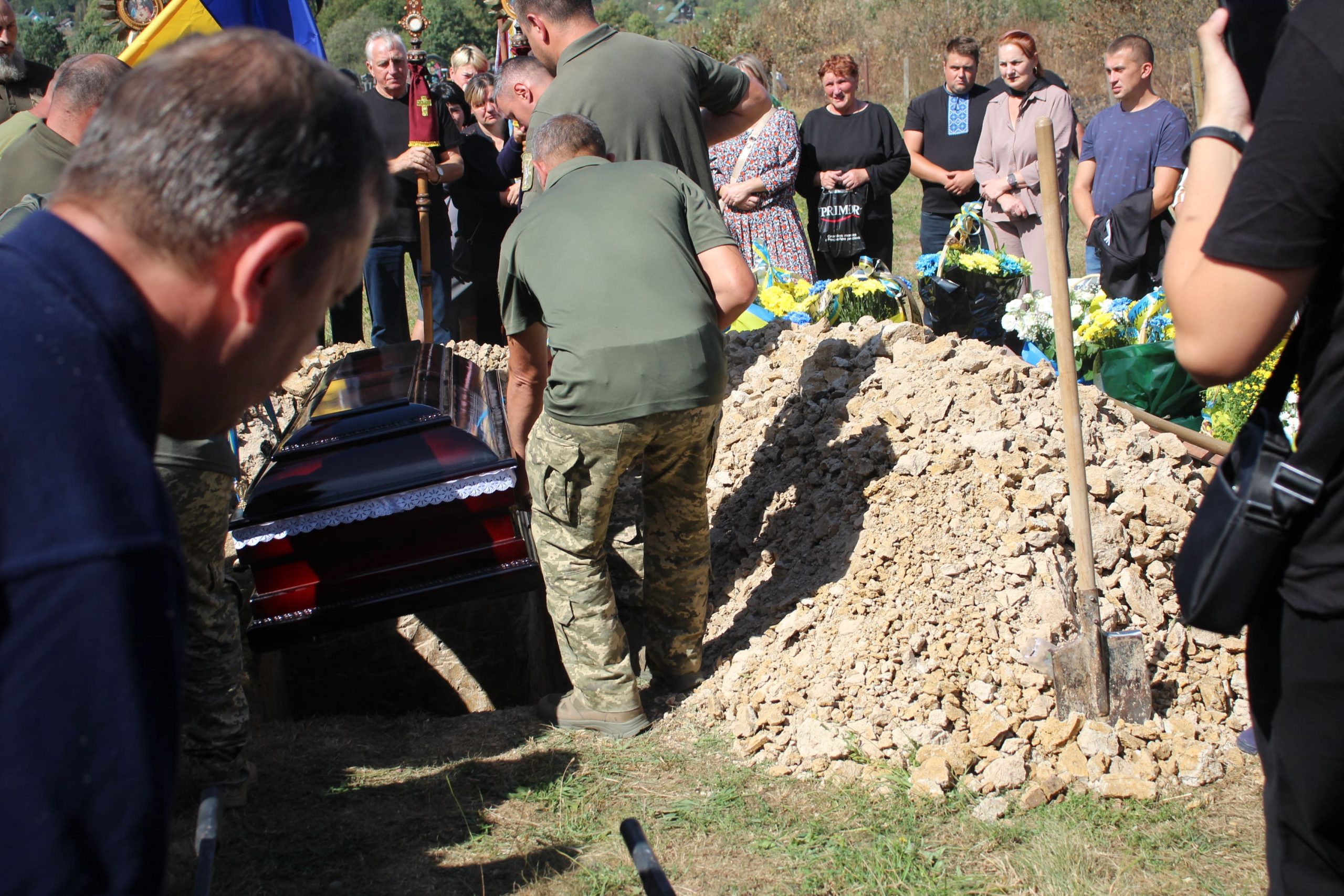 Створивши коридор шани й поваги і не стримуючи сліз, люди зустріли свого Героя “живим ланцюгом” з квітами та проводжали аж до воріт його рідного дому. На чин похорону численно прийшли рідня, друзі, керівництво громади, зокрема сільський голова Роман Крутий, секретар сільської ради Юрій Проценко, заступник голови Микола Зелінський, староста с. Майдан Марія Зелінська, представники депутатського корпусу громади, побратими, духовенство, освітяни, учні, медики і чимало небайдужих мешканців.