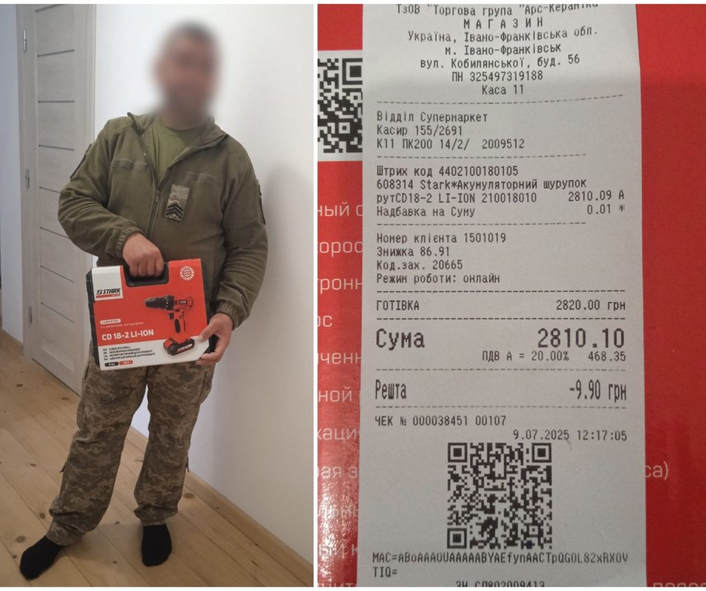 - 2 900 грн – придбання шуруповерта для потреб воїнів;