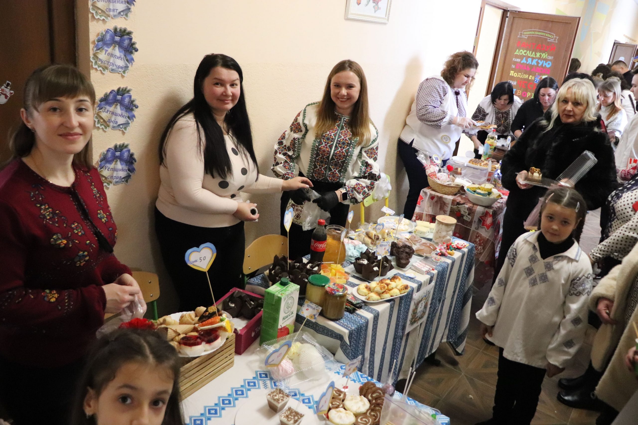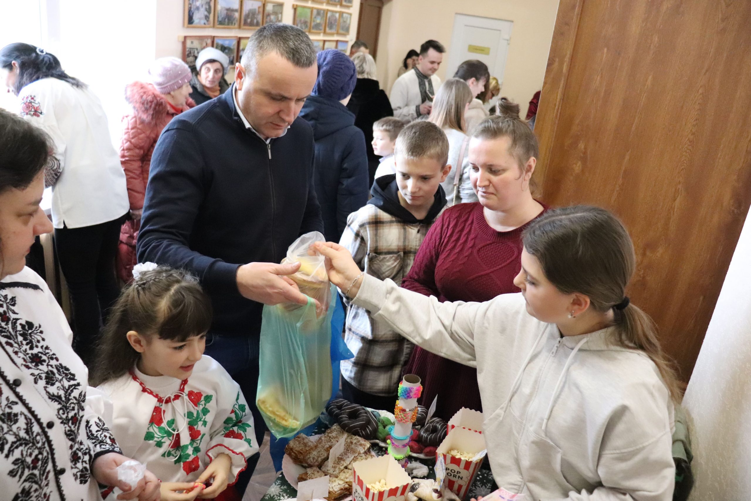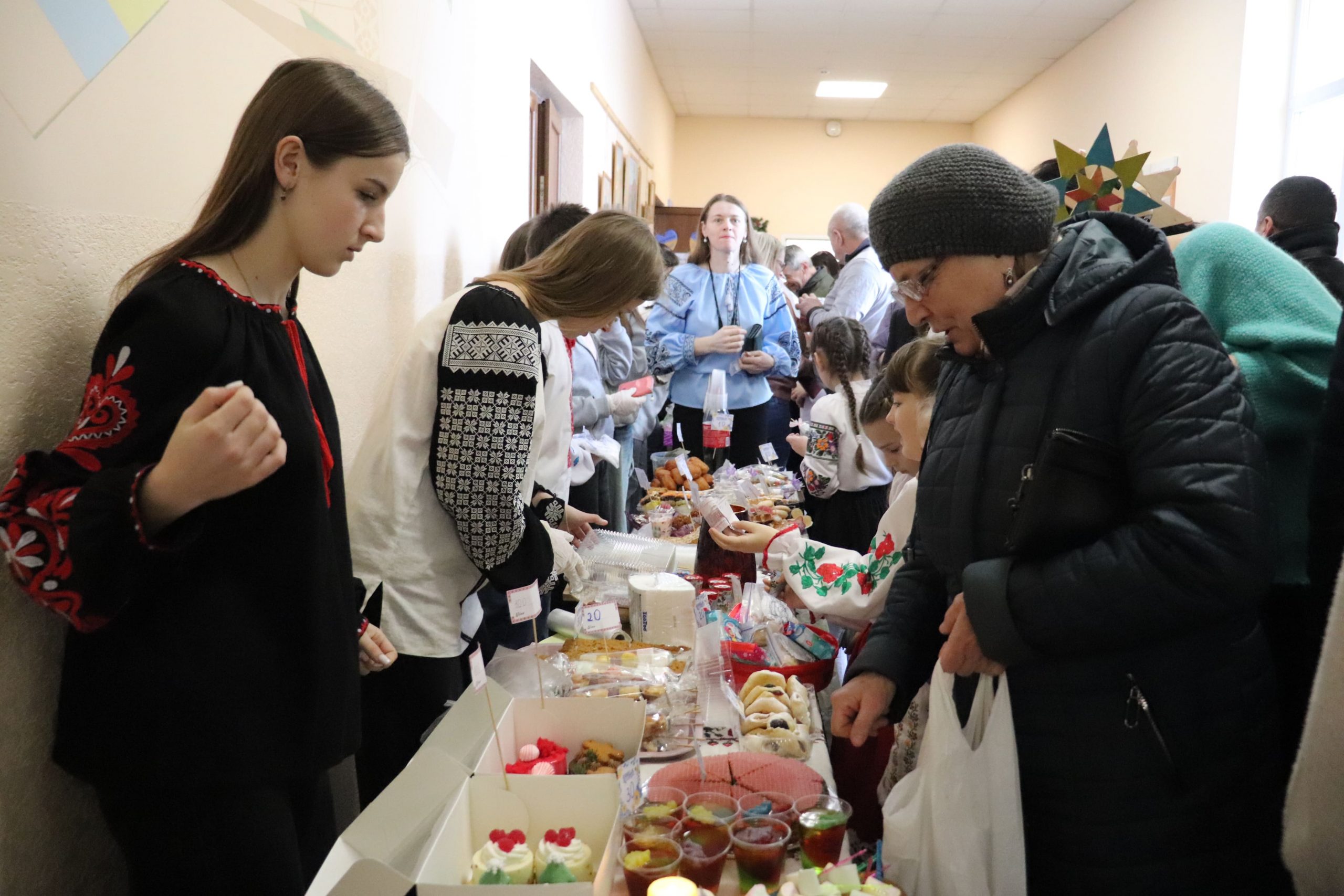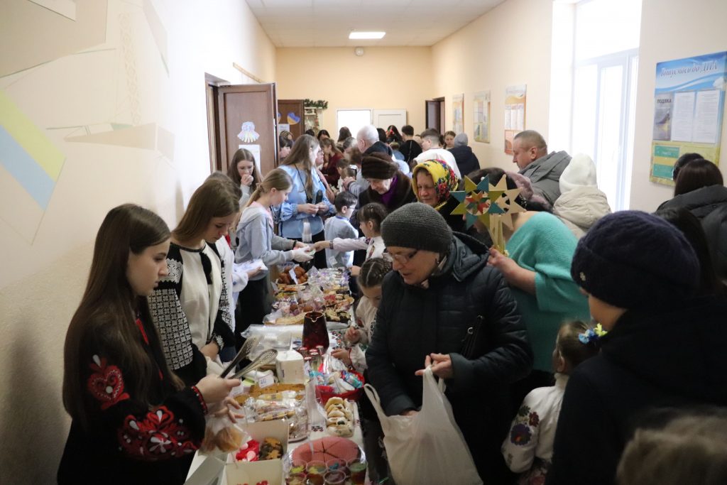Розпочався ярмарок зі святкового дійства, яке створило особливу атмосферу єдності й добра. Прозвучала спільна коляда та благословення пароха о. Дмитра Кубацького. Після цього стартували доброчинні торги. Шкільна спільнота разом із батьками та вчителями заздалегідь подбала про наповнення ярмарку. Відвідувачам пропонували придбати домашню випічку, солодощі, десерти, напої, картини, вироби ручної роботи, книги, воскові Стрітенські свічі та багато інших речей. Окремо провели вікторину-лотерею з розіграшем призів. У приміщенні гімназії панувала тепла й жвава атмосфера, а всі смаколики розкупили за лічені хвилини.