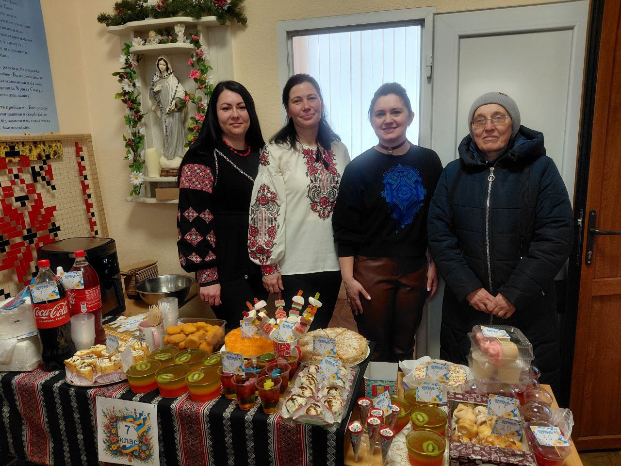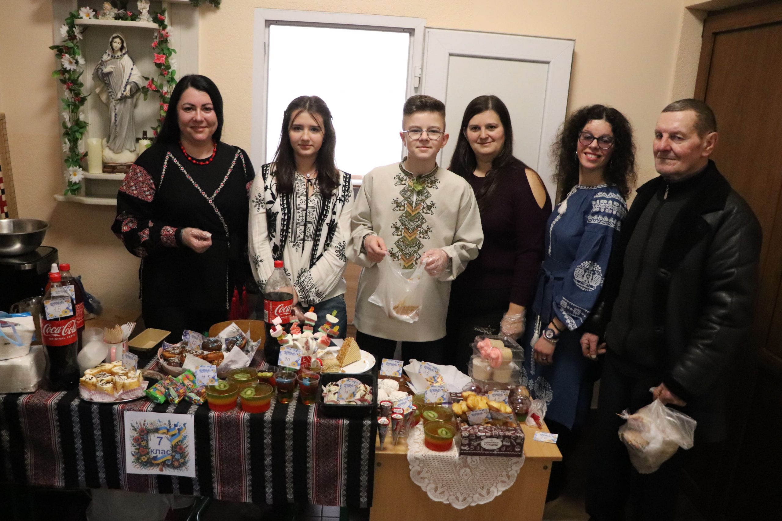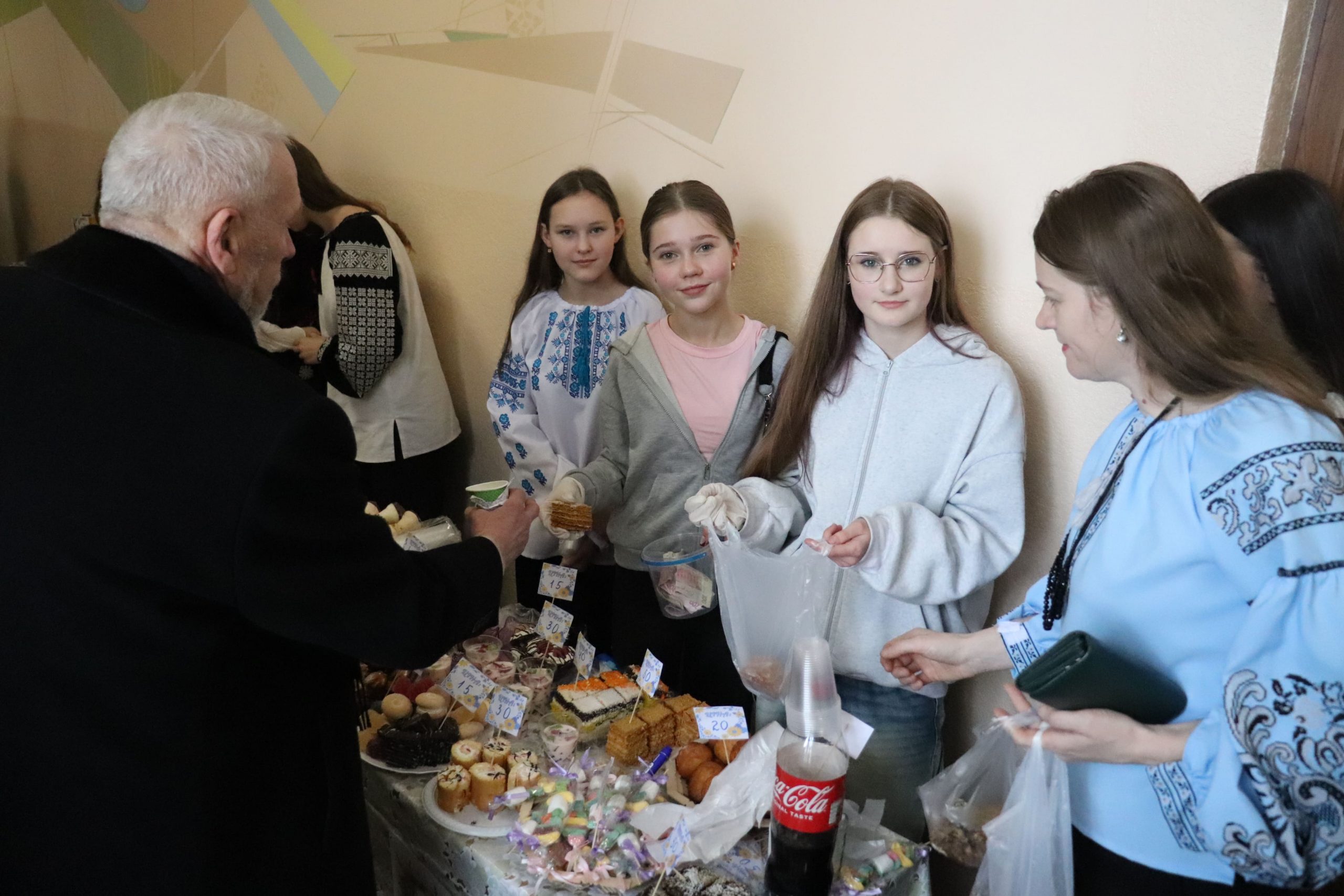 Розпочався ярмарок зі святкового дійства, яке створило особливу атмосферу єдності й добра. Прозвучала спільна коляда та благословення пароха о. Дмитра Кубацького. Після цього стартували доброчинні торги. Шкільна спільнота разом із батьками та вчителями заздалегідь подбала про наповнення ярмарку. Відвідувачам пропонували придбати домашню випічку, солодощі, десерти, напої, картини, вироби ручної роботи, книги, воскові Стрітенські свічі та багато інших речей. Окремо провели вікторину-лотерею з розіграшем призів. У приміщенні гімназії панувала тепла й жвава атмосфера, а всі смаколики розкупили за лічені хвилини.