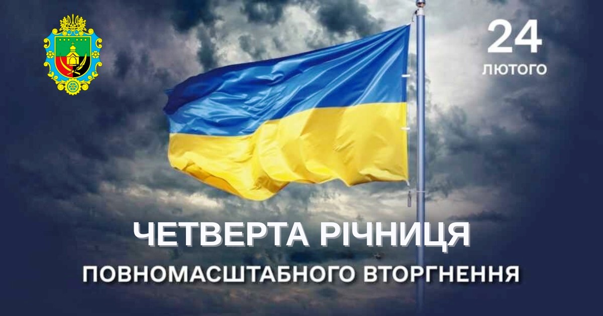 24 лютого 2026 року минає чотири роки відтоді, як окупант розпочав проти України повномасштабне вторгнення. Цей день назавжди закарбувався не лише в історії нашої держави, а й у пам’яті кожного з нас.