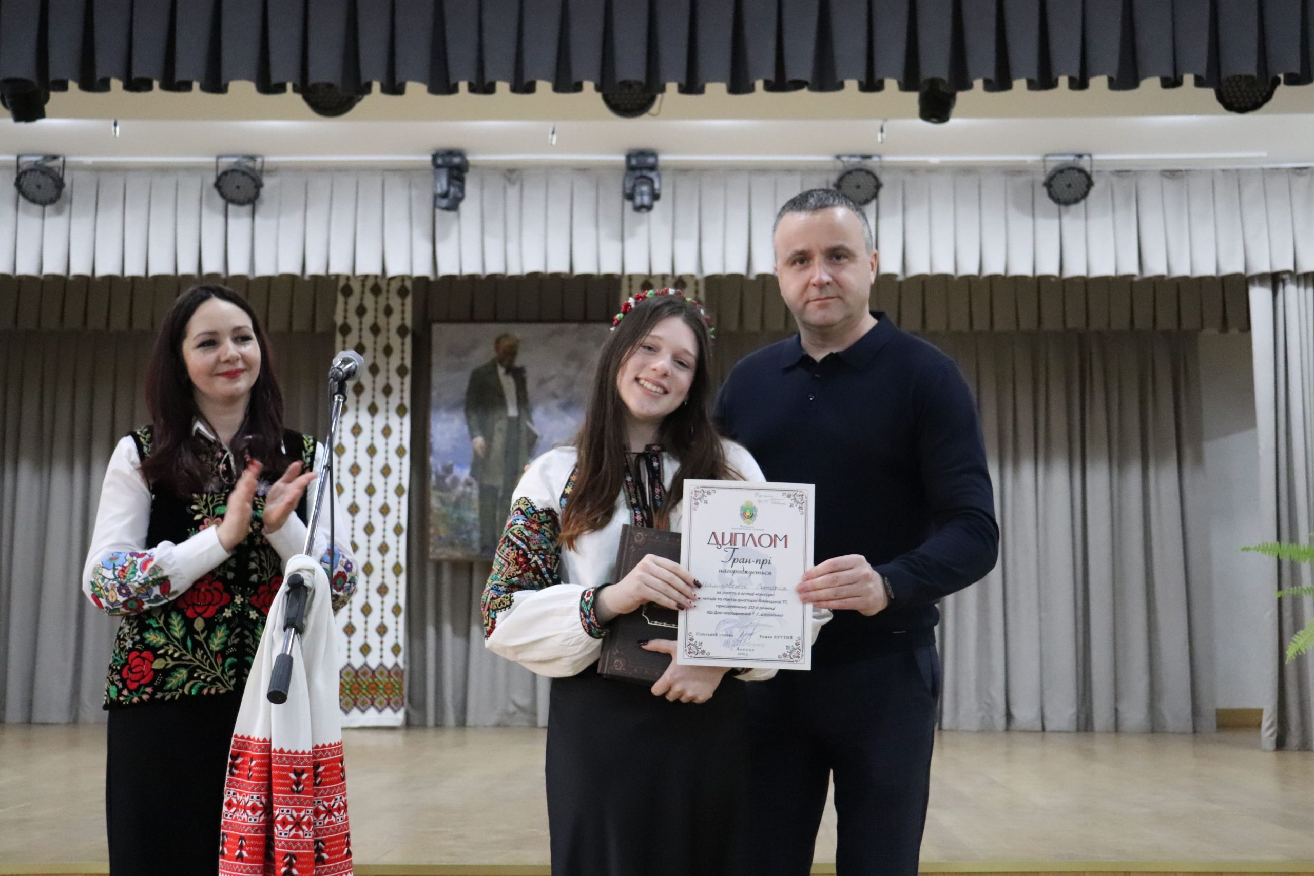 Гран-прі конкурсу здобула тязівчанка Вікторія Малиновська, яка вразила журі та глядачів майстерним виконанням поезії Кобзаря “Утоплена”.