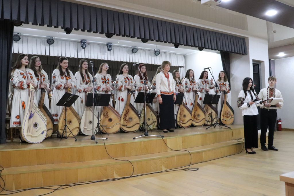 Протягом дійства капела бандуристів Івано-Франківського фахового музичного коледжу ім. Дениса Січинського під керівництвом Марії Лахнюк, що налічує близько 30 учасників, подарувала присутнім витончену, глибоку програму з творів українських композиторів та обробок народних пісень. У залі панувала особливо тепла атмосфера. Вокально-інструментальні номери у супроводі музичних інструментів звучали надзвичайно чуттєво, а після кожного виступу глядачі щедро дякували артистам оваціями. Концерт тривав дві години і пройшов на одному подиху. Під час заходу присутні хвилиною мовчання вшанували пам’ять усіх загиблих Героїв, які віддали життя за Україну.